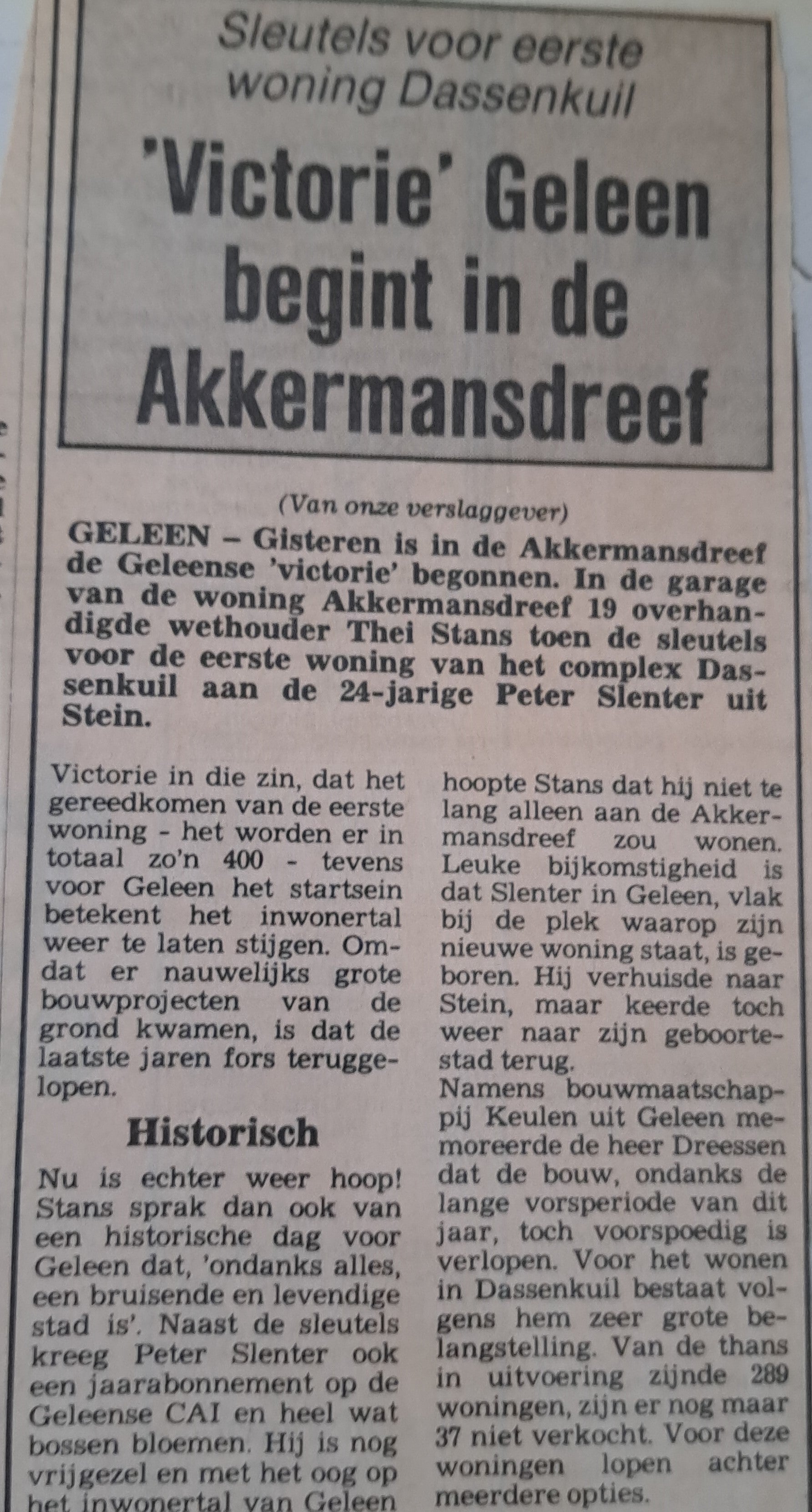 In 1986 werd een aanvang genomen met de bouw van een nieuwe woonwijk in Geleen: De Dassenkuil.